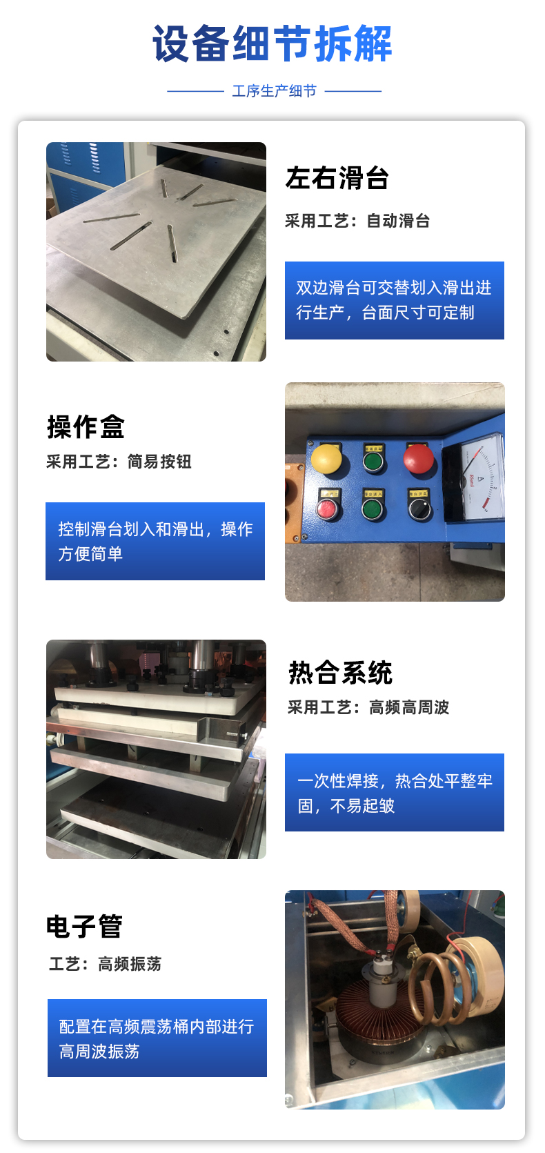 能馬桶蓋座鋁箔加熱片熱合機(jī) 咨詢熱線:+8613564342156 在線咨詢 產(chǎn)品詳細(xì) 本信息鏈接地址:/gaozhoubo/427.html 標(biāo)簽: 相關(guān)推薦: 上一篇:PVC運(yùn)輸液體袋高頻熱合機(jī) 下一篇:PE+無紡布升溫毯熱壓機(jī) 用手機(jī)看 拍下二維碼,信息隨身看 試試用手機(jī)掃一掃, 在你手機(jī)上繼續(xù)觀看此頁面。